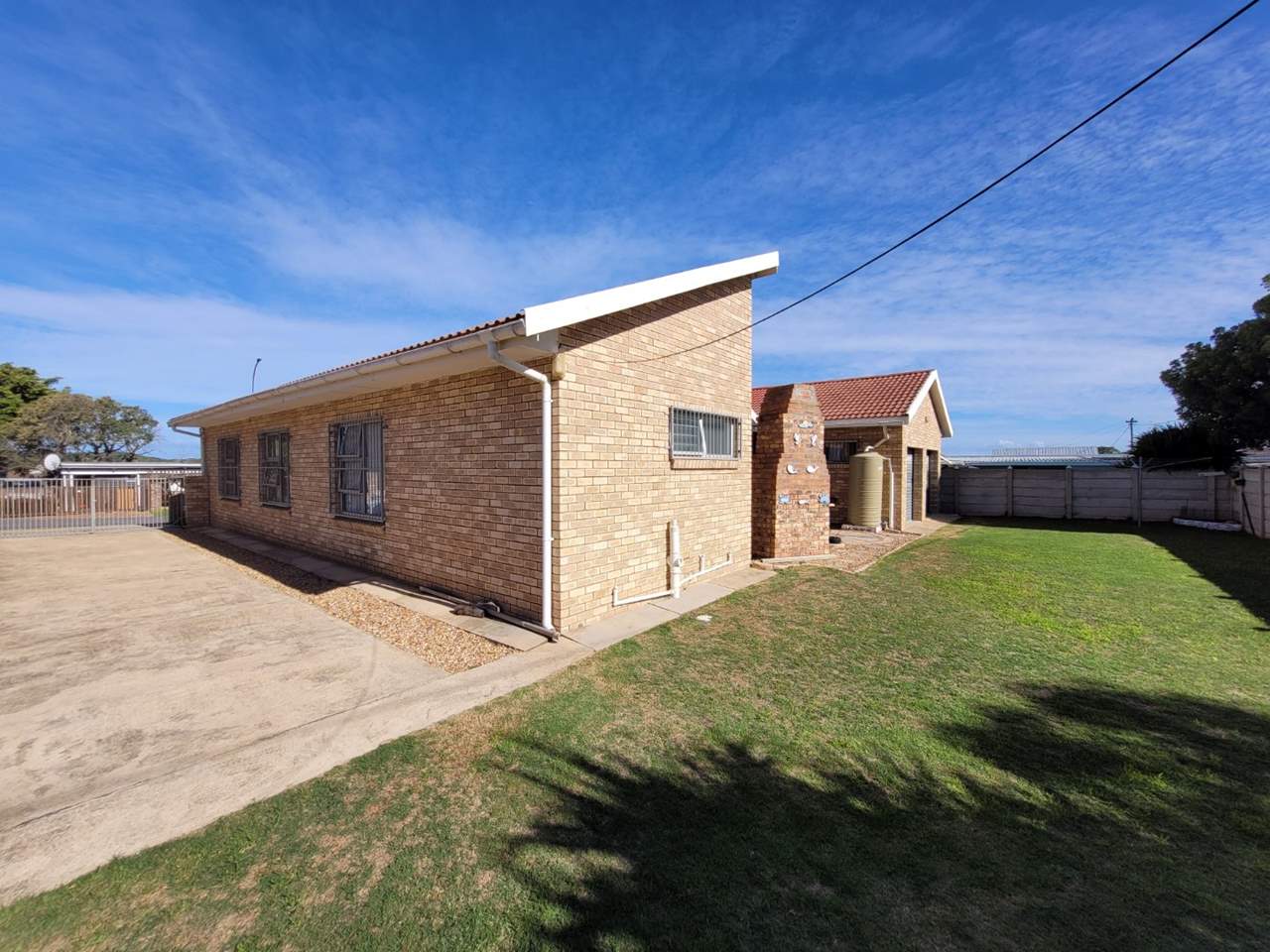 The exterior features durable facebrick walls, aluminium window frames, and a tiled roof — ensuring lasting quality and minimal upkeep. The low-maintenance garden further adds to the easy-living appeal of this property.