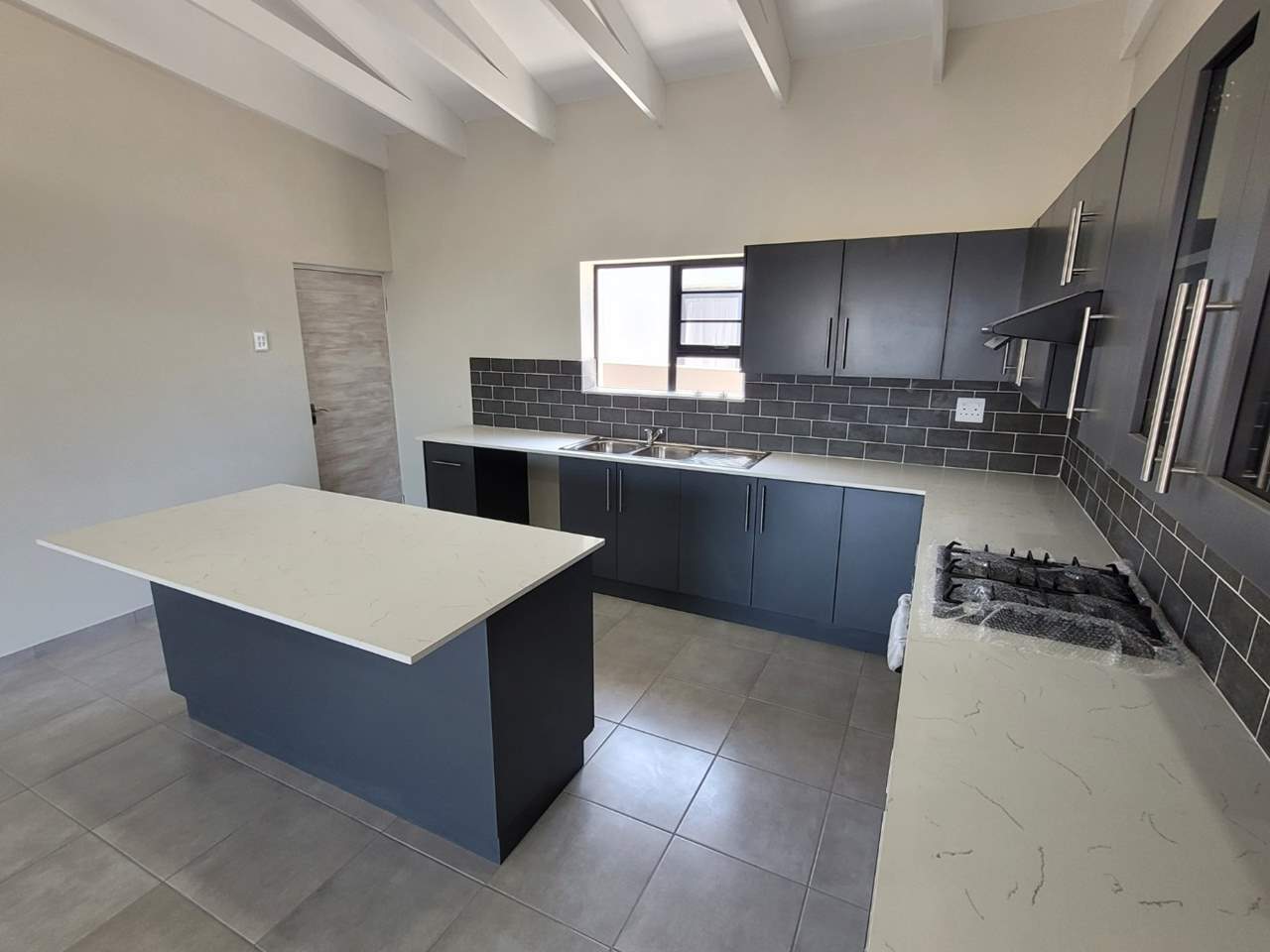 Located in a quiet cul-de-sac this home with its quality finishes offers 3 bedrooms (main-en suite), 2 bathrooms, modern kitchen with electric oven and gas hob, open plan lounge and dining area with sliding doors to covered built-in braai area, double garage on remote, fully walled plot with motorised gate. The driveway is paved. A great investment opportunity.