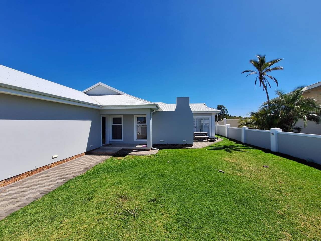 The home is defined by its contemporary architecture and clean lines. A spacious driveway leads to an extra-deep double garage with automated doors, offering ample space for vehicles, storage, and a laundry station. The garden is fully walled, creating a safe haven for children and pets to play freely. A landscaped pathway through the garden leads you to the front entrance, where the home welcomes you inside.