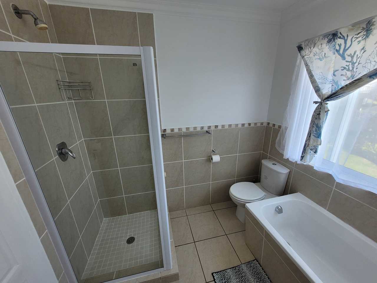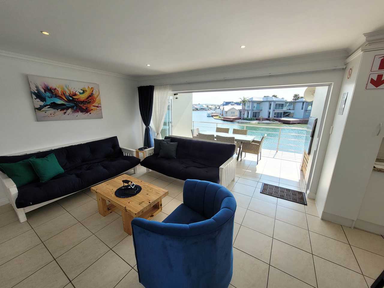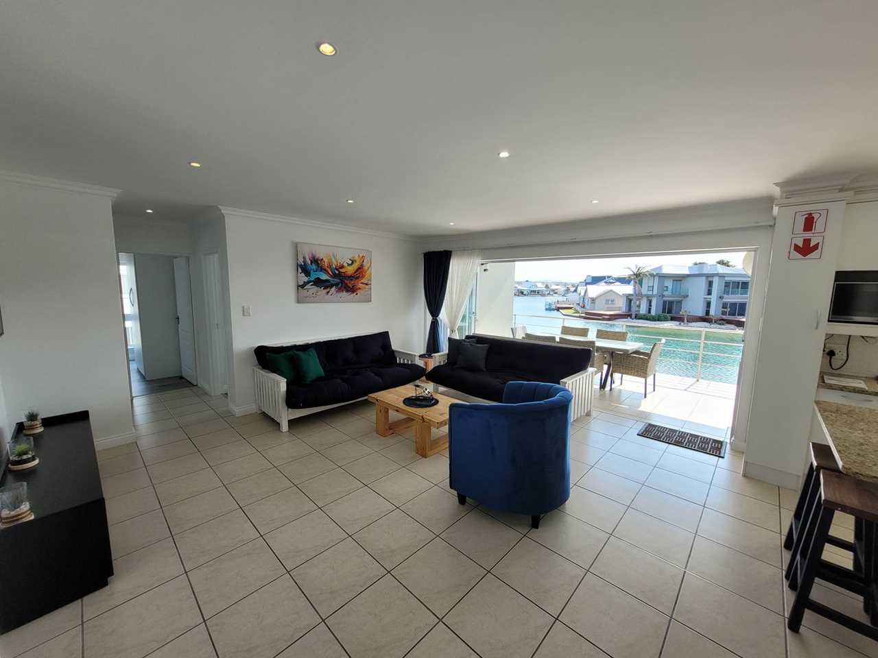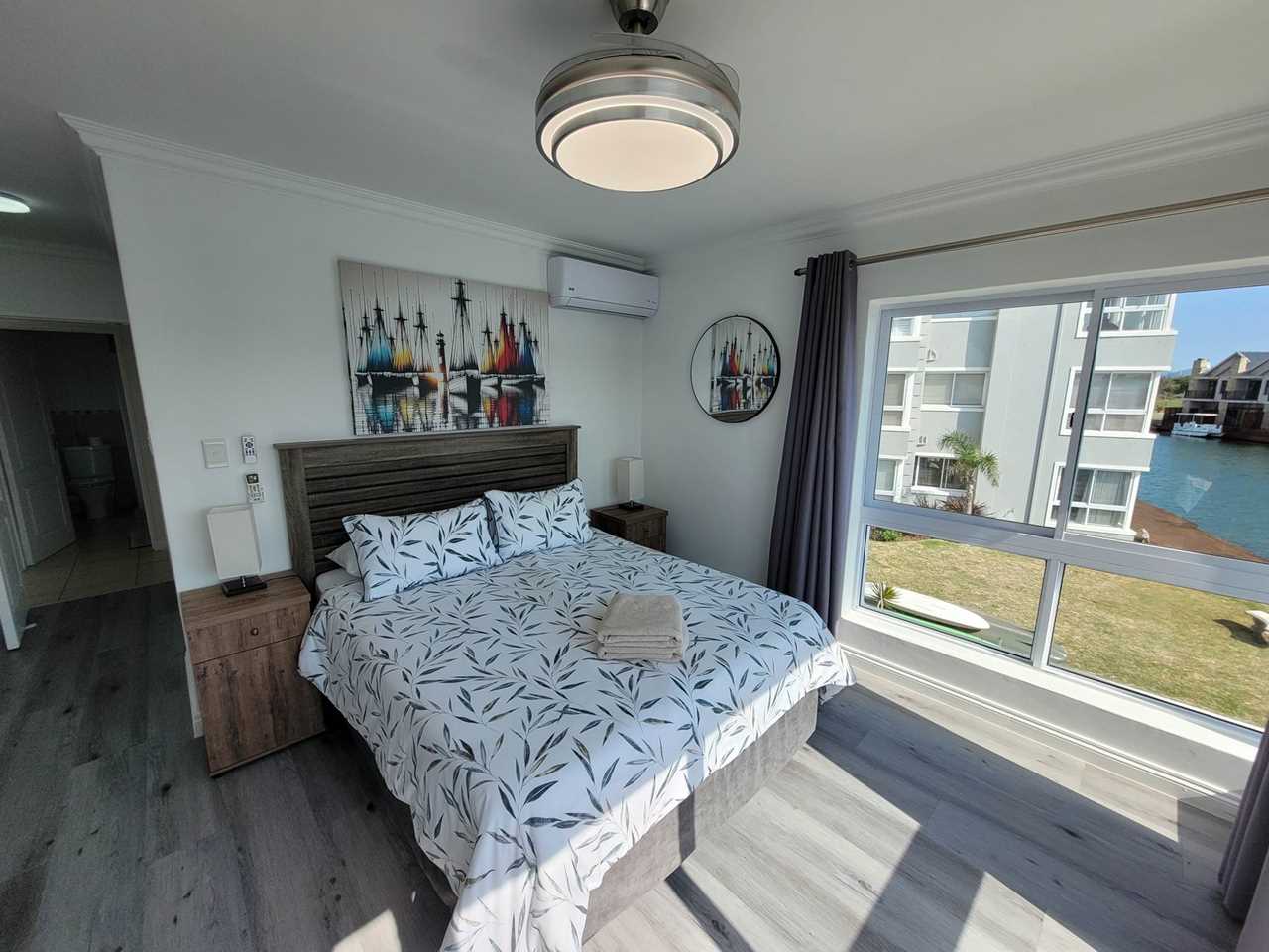 The apartment features a generous open-plan living area that flows effortlessly onto a large, covered patio via stackable sliding doors – ideal for entertaining or relaxing while soaking up the tranquil surroundings. The patio includes a brand-new built-in stainless steel braai for ultimate outdoor living.
