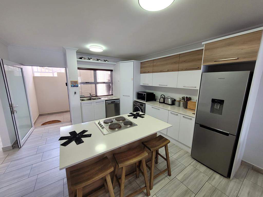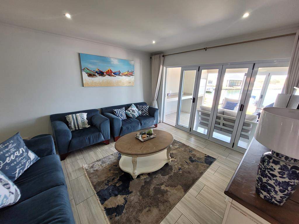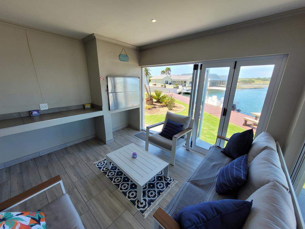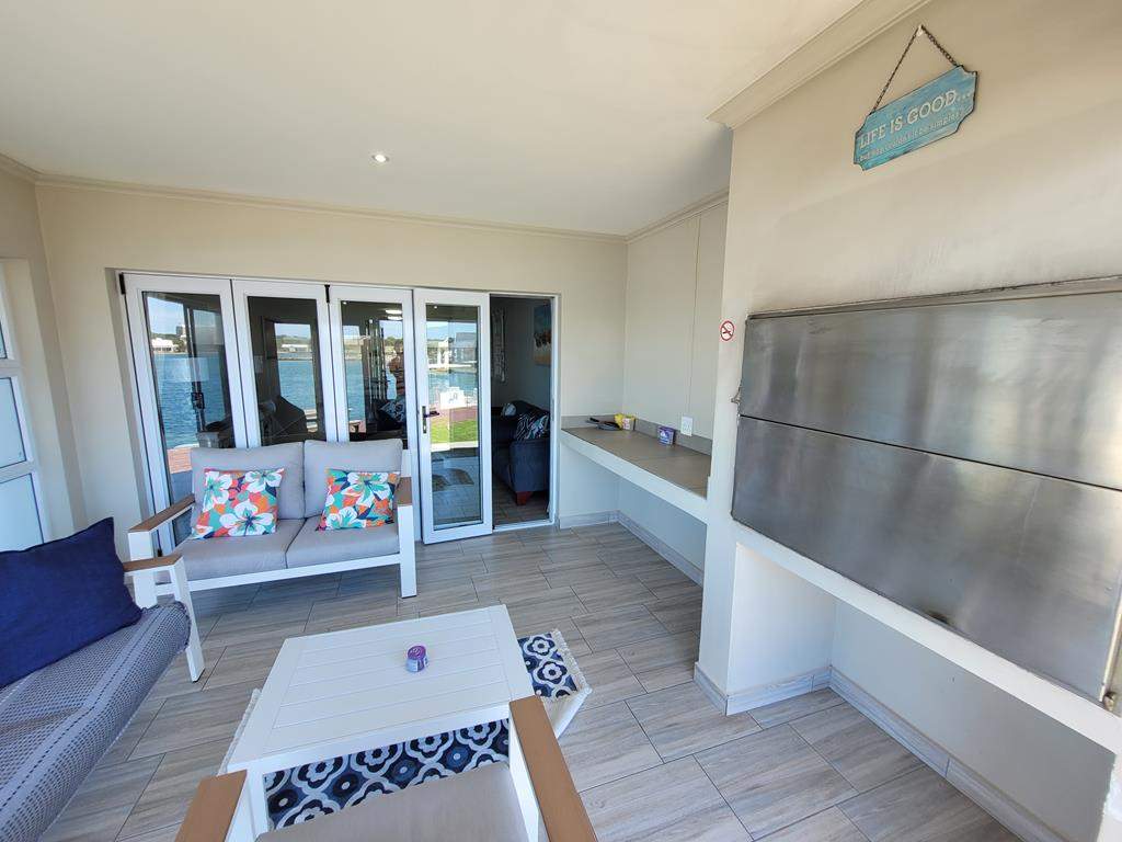 The enclosed patio, fitted with sliding and stack doors, creates a perfect indoor-outdoor living space and includes a built-in stainless steel braai—ideal for entertaining while enjoying the scenic canal views.