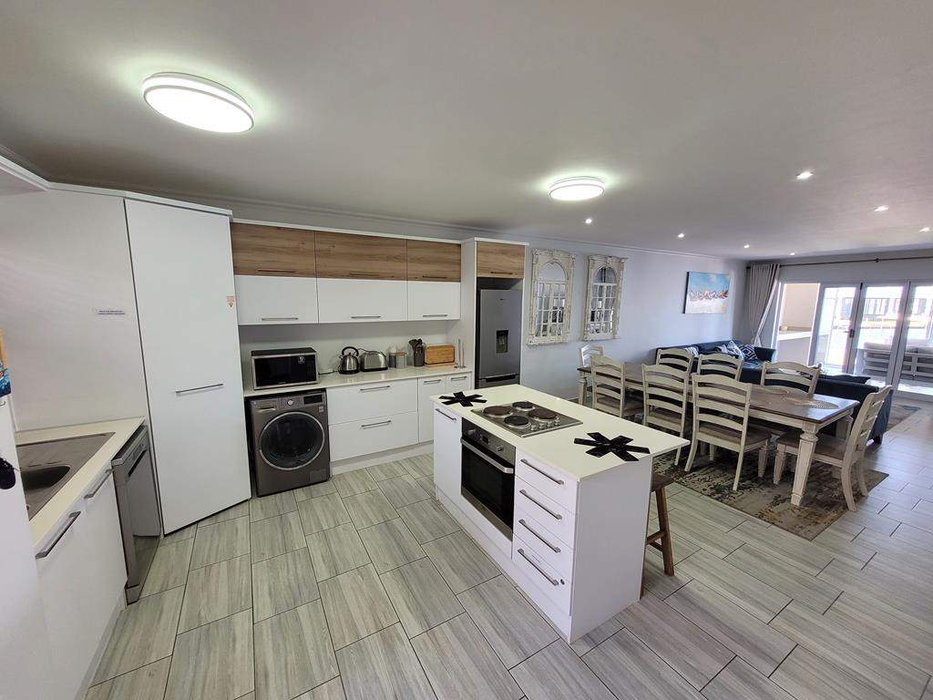 This modern apartment offers a spacious open-plan layout, featuring a stylish kitchen that flows seamlessly into the dining and lounge area.
