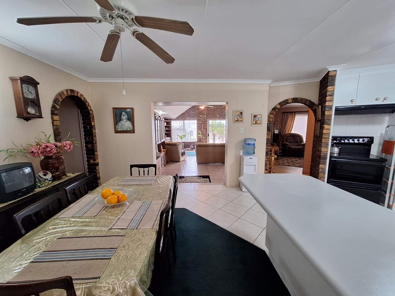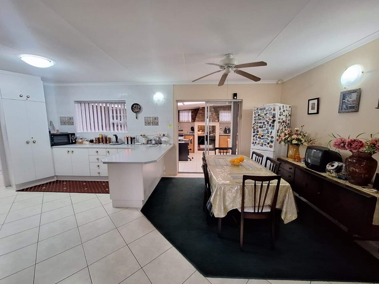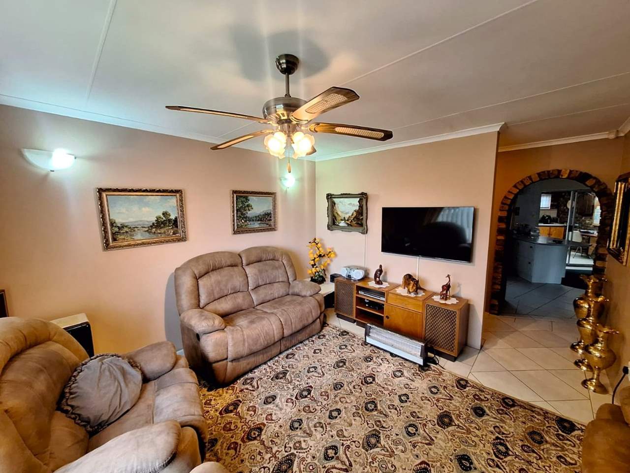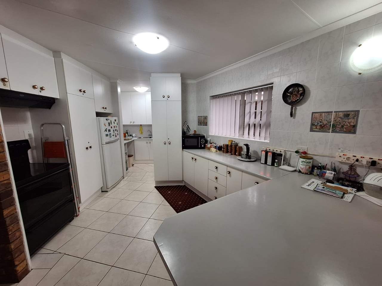 Inside, the welcoming entrance leads to a bright lounge on one side and a spacious kitchen and dining area on the other. The kitchen is well-equipped with generous cupboard space and a separate scullery with room for two under-counter appliances. From the dining area, the home flows effortlessly into a large entertainment room that opens onto the manicured garden, perfect for family gatherings or hosting guests.