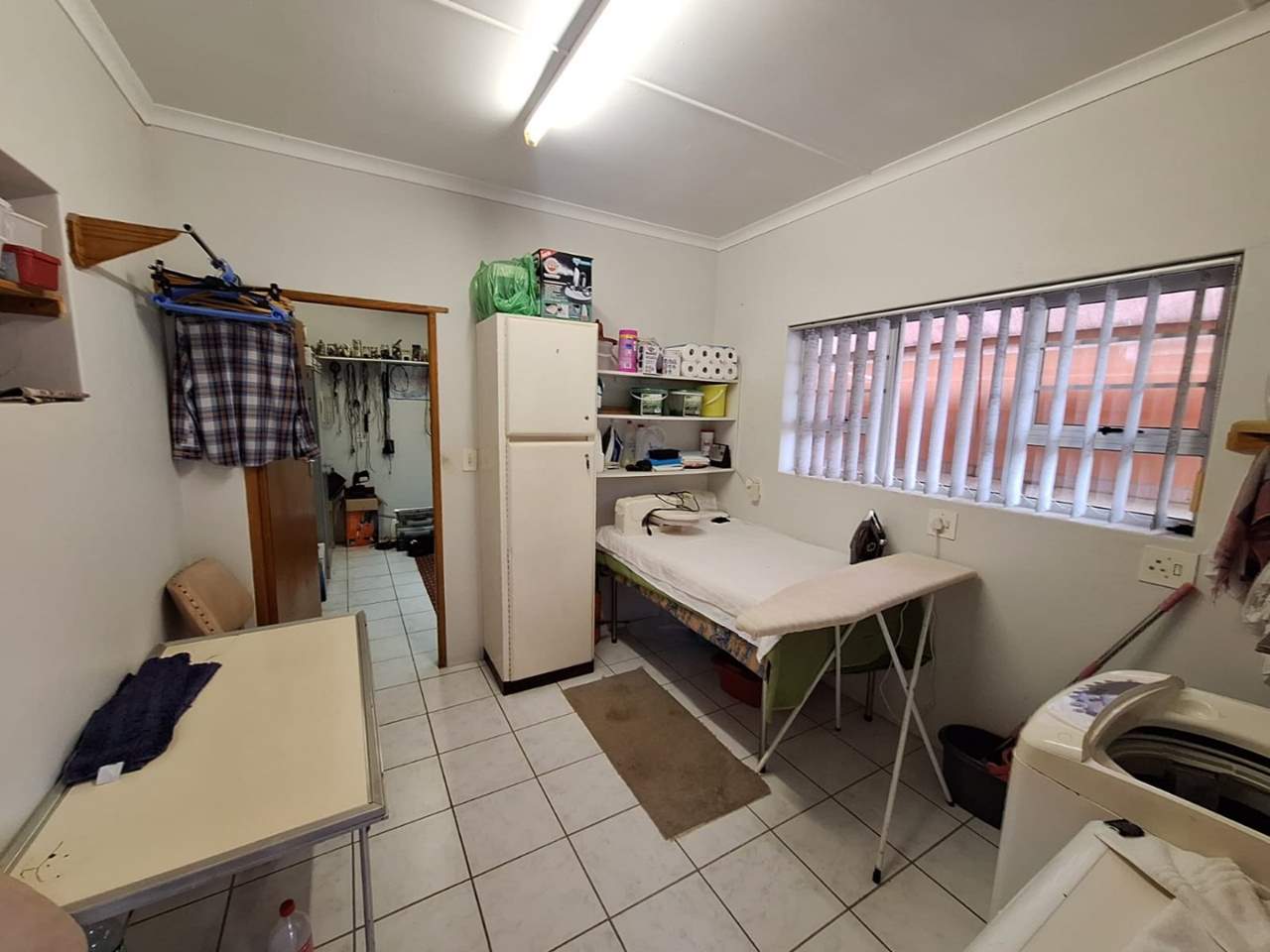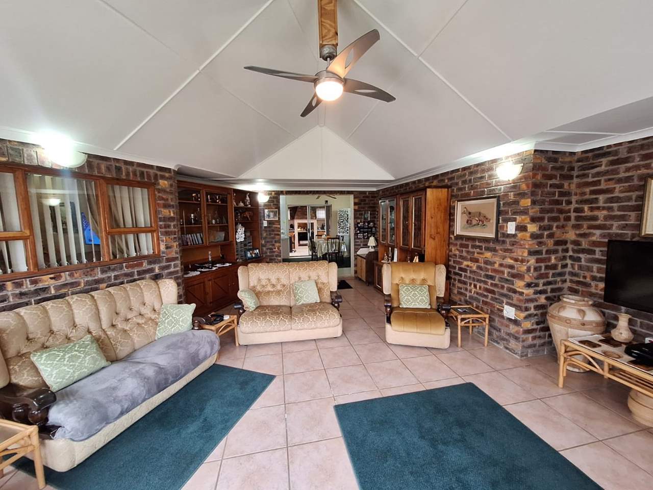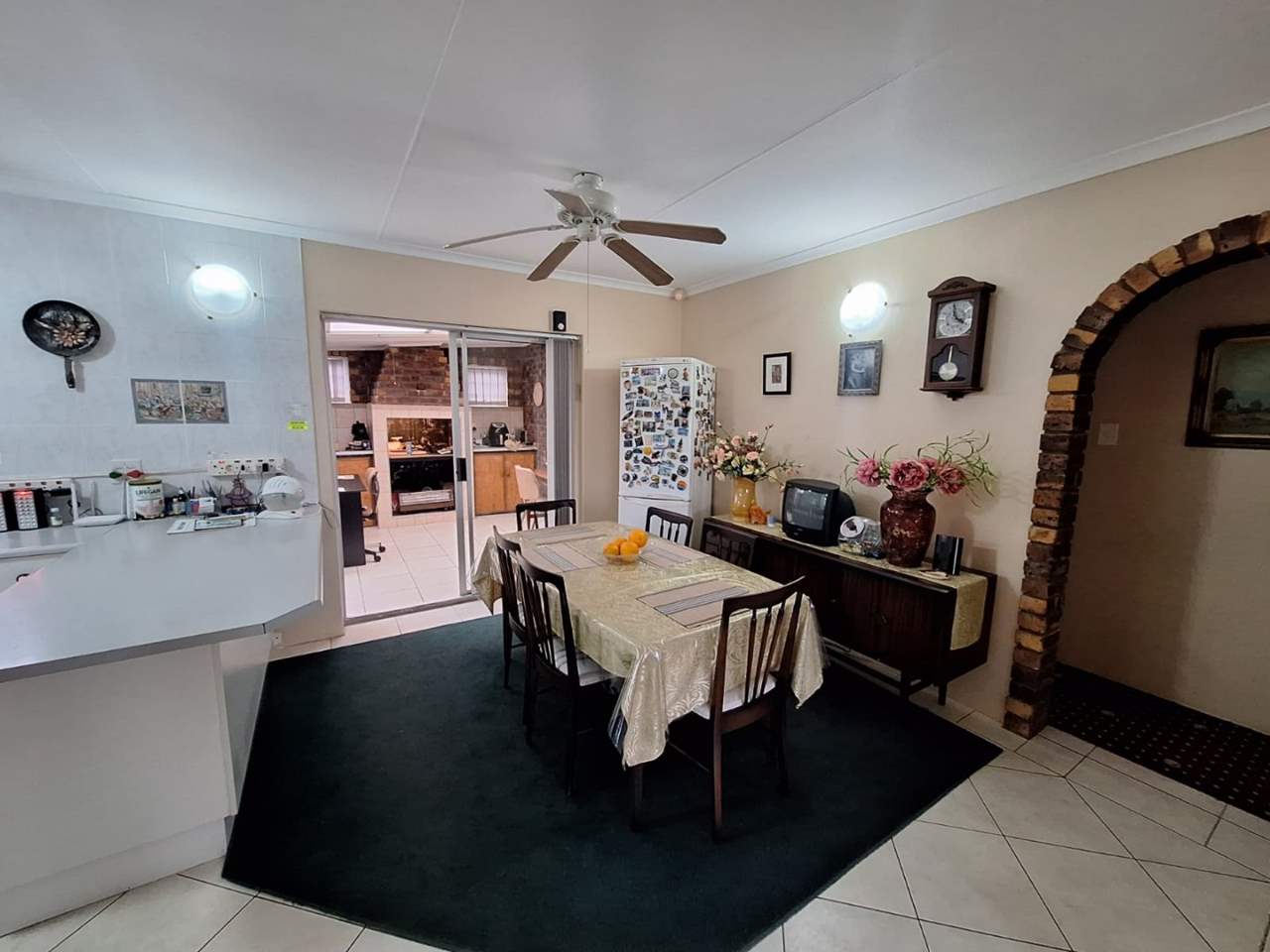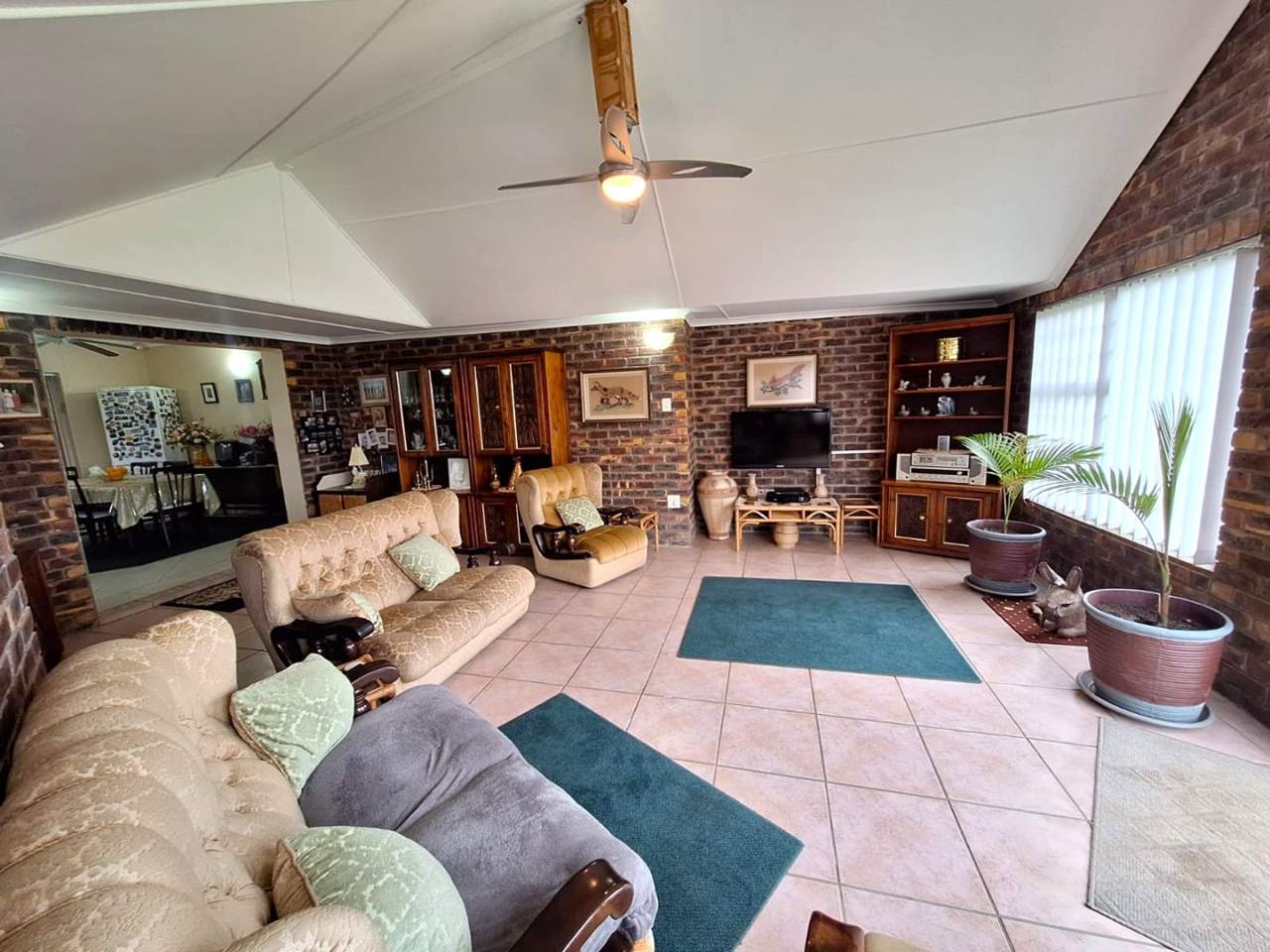 Inside, the welcoming entrance leads to a bright lounge on one side and a spacious kitchen and dining area on the other. The kitchen is well-equipped with generous cupboard space and a separate scullery with room for two under-counter appliances. From the dining area, the home flows effortlessly into a large entertainment room that opens onto the manicured garden, perfect for family gatherings or hosting guests.