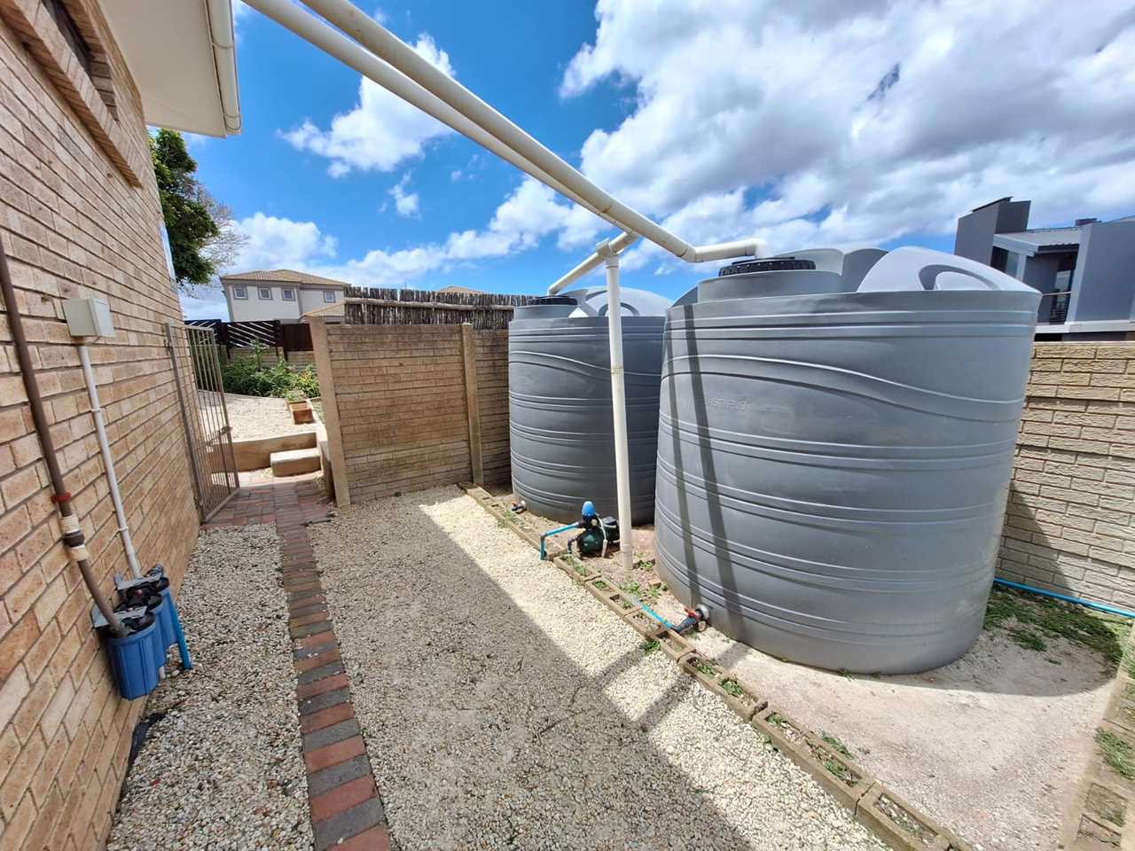 • Two 5000-litre water tanks connected via a pressure pump and filtration system