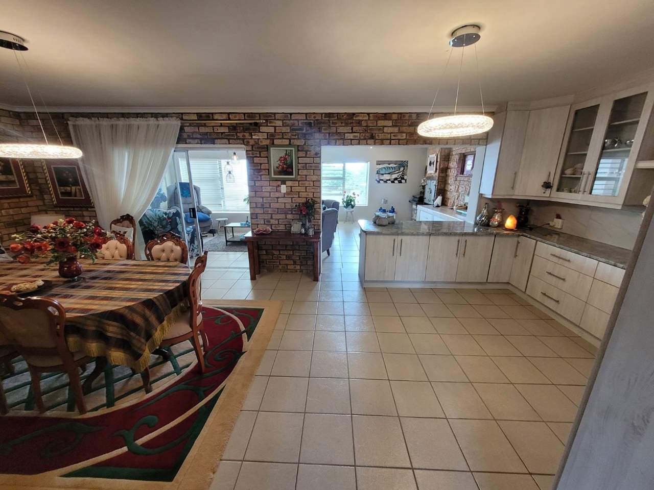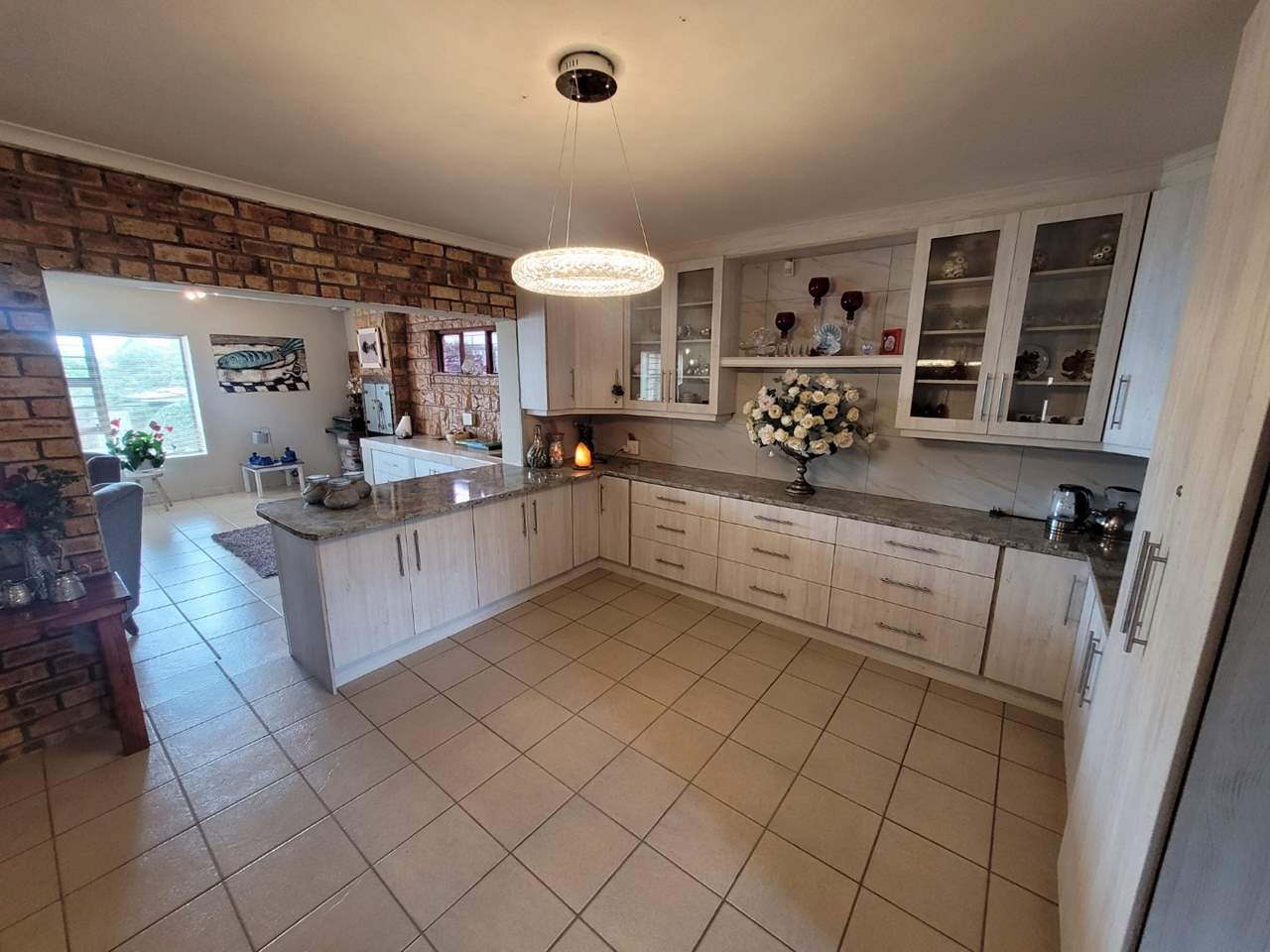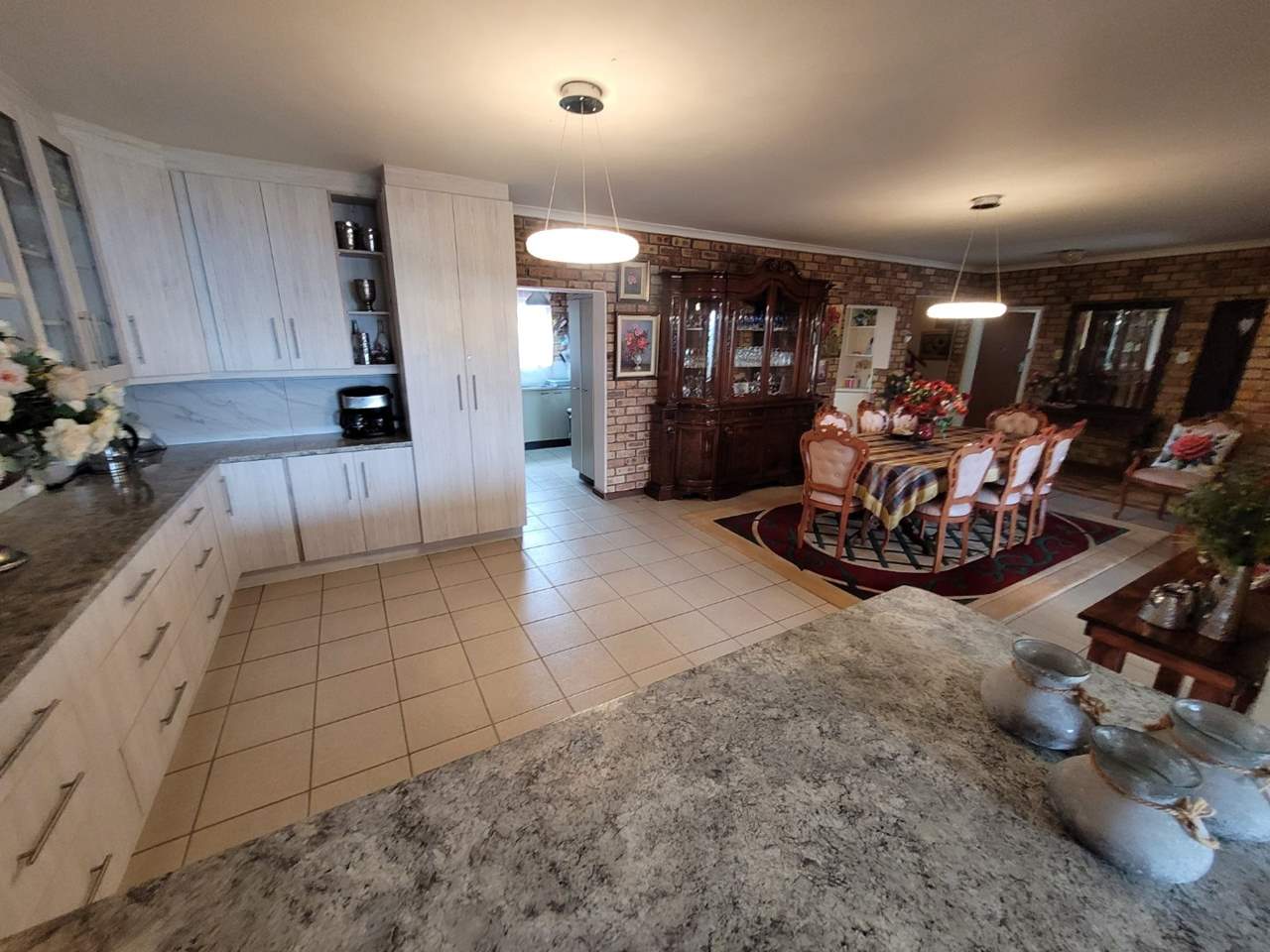 Spacious open-plan kitchen flowing to the large dining room.