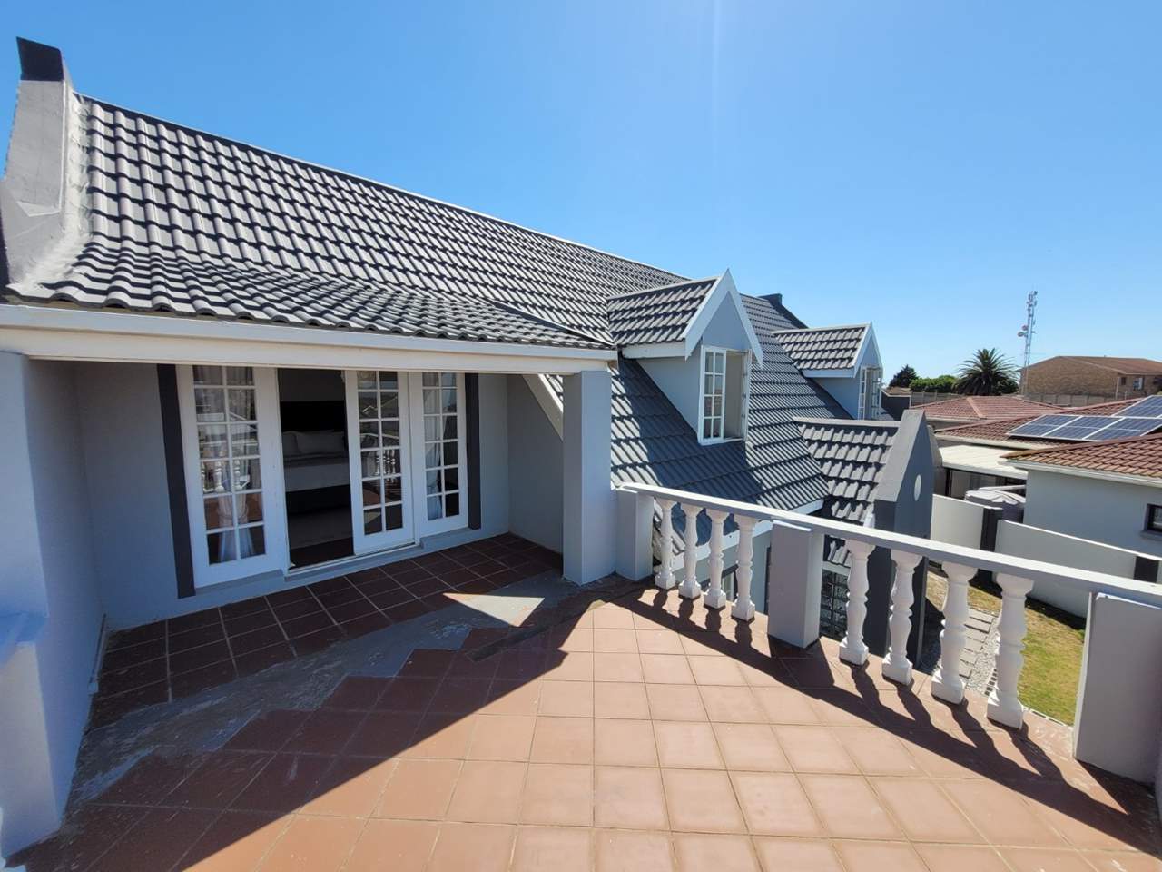 Upstairs, you’ll find two generously sized bedrooms. One bedroom opens onto a private patio, while the other includes its own toilet. These bedrooms share a full bathroom, making the layout practical and family-friendly.